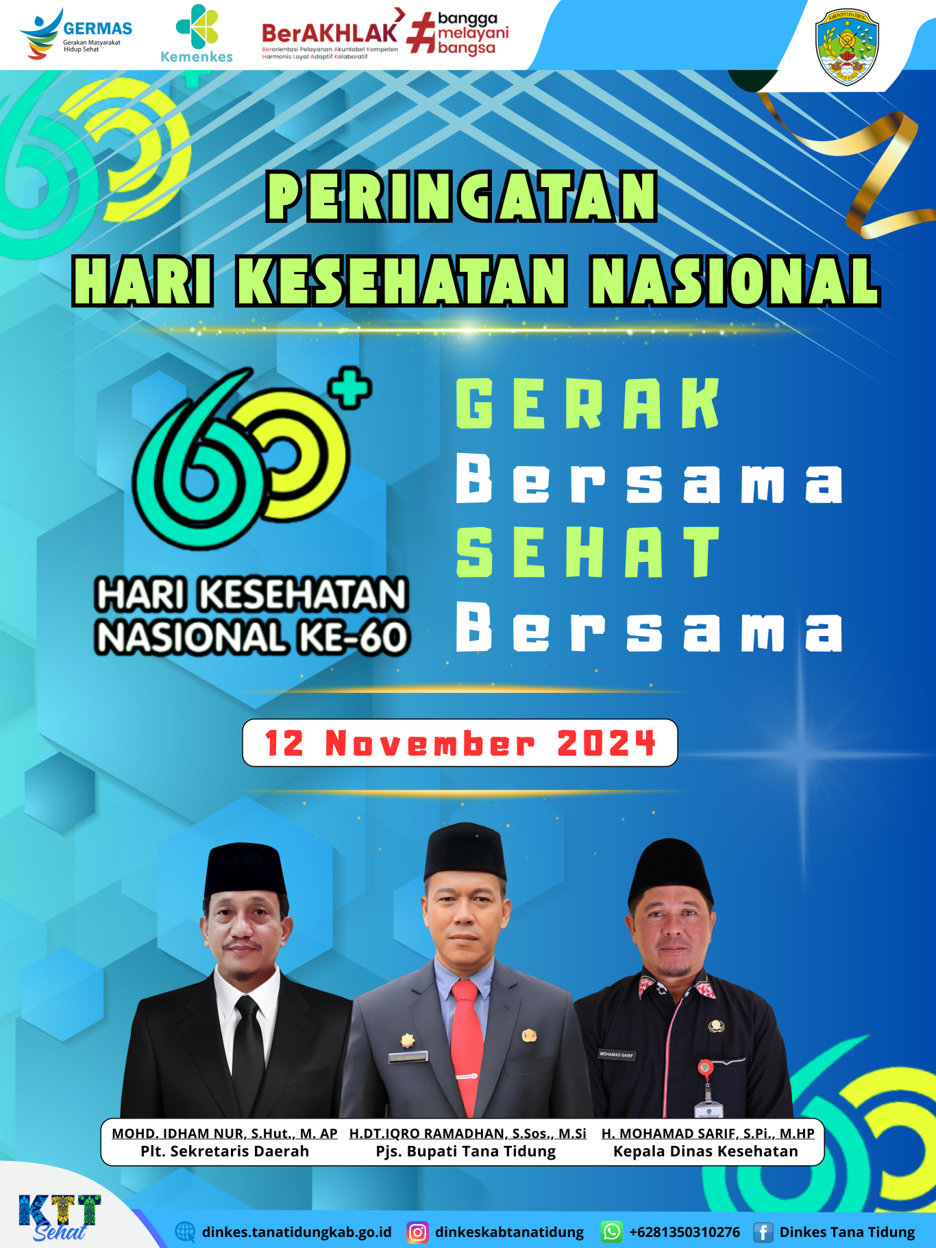 Tanggal 12 November diperingati sebagai Hari Kesehatan Nasional (HKN), dan pada tahun ini merupakan peringatan yang ke-60 dengan tema �Gerak Bersama Sehat Bersama�.