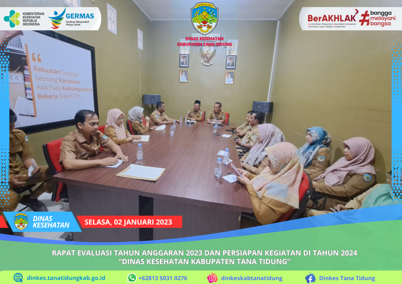Rapat Evaluasi Tahun Anggaran 2023 dan Persiapan Kegiatan di Tahun 2024, Kegiatan dilaksanakan di ruang rapat Dinas Kesehatan yang dipimpin langsung oleh Kepala ..