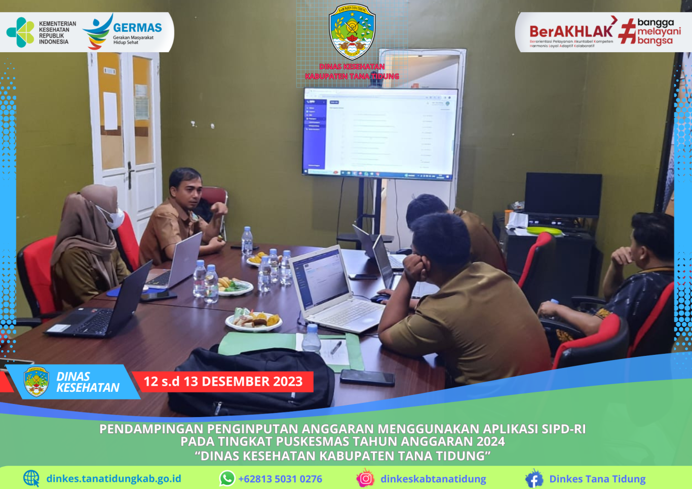 Kasubbag. Perencanaan, Program dan Keuangan beserta staf melakukan pendampingan penginputan anggaran menggunakan Aplikasi SIPD-RI pada tingkat Puskesmas tahun Angga..