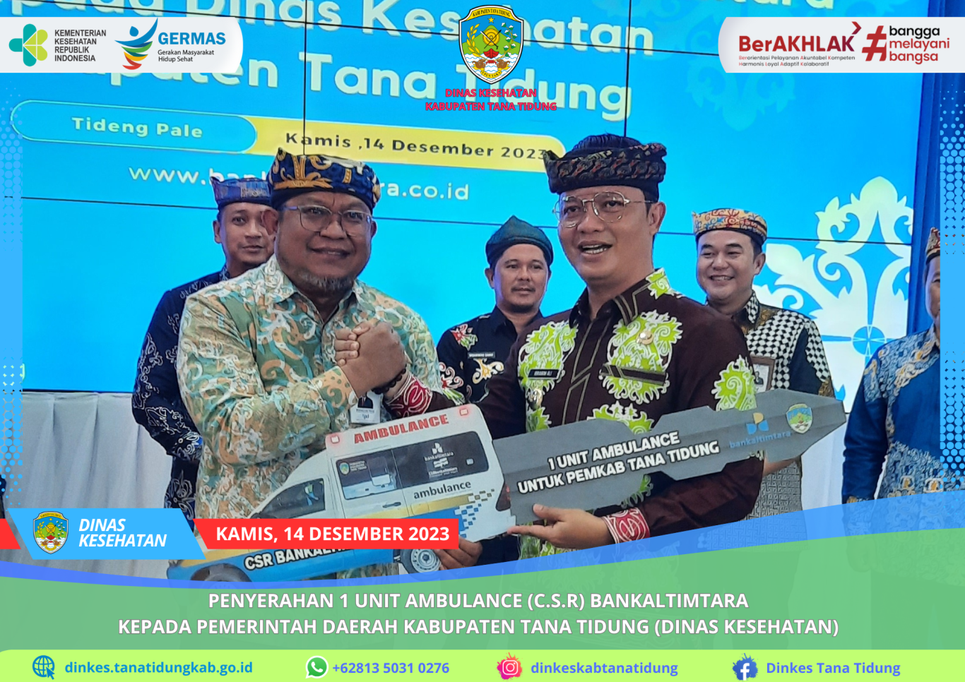 Penyerahan 1 Unit Ambulance (C.S.R) oleh Bankaltimtara kepada Pemerintah Daerah Kabupaten Tana Tidung dalam hal ini Dinas Kesehatan yang berlangsung di gedung Pendop..