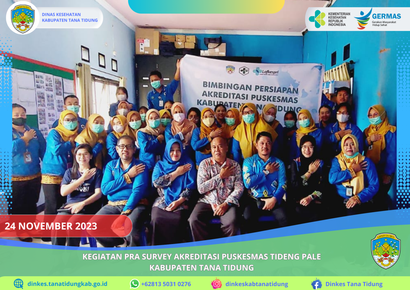 Kegiatan Pra Survey Akreditasi Puskesmas Tideng Pale Dinas Kesehatan Kabupaten Tana Tidung yang dilaksanakan oleh tim Lembaga Survey Akreditasi Provinsi Kalimantan..
